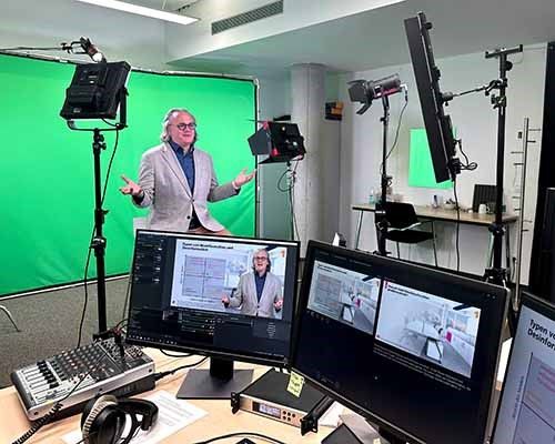 Einer meiner Lieblingsorte am Campus ist unser E-Learning-Studio, in dem wir Lernvideos für das Fernstudium, Zertifikatskurse und Blended-Learning-Angebote im berufsbegleitenden Studium produzieren. Unser Content-Team, dass die digitalen Lerninhalte umsetzt und die Lernplattformen der ISM betreut, ist am Stuttgarter Campus angesiedelt. Und auch das interne Weiterbildungsprogramm für unsere Lehrenden – von ChatGPT bis Moodle, wir von den Kolleginnen und Kollegen am Stuttgarter Campus vorbereitet und durchgeführt. Außerdem planen wir immer wieder Veranstaltungen und Weiterbildungen rund um das Thema Digitalisierung am Standort.